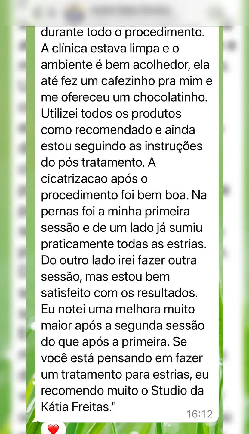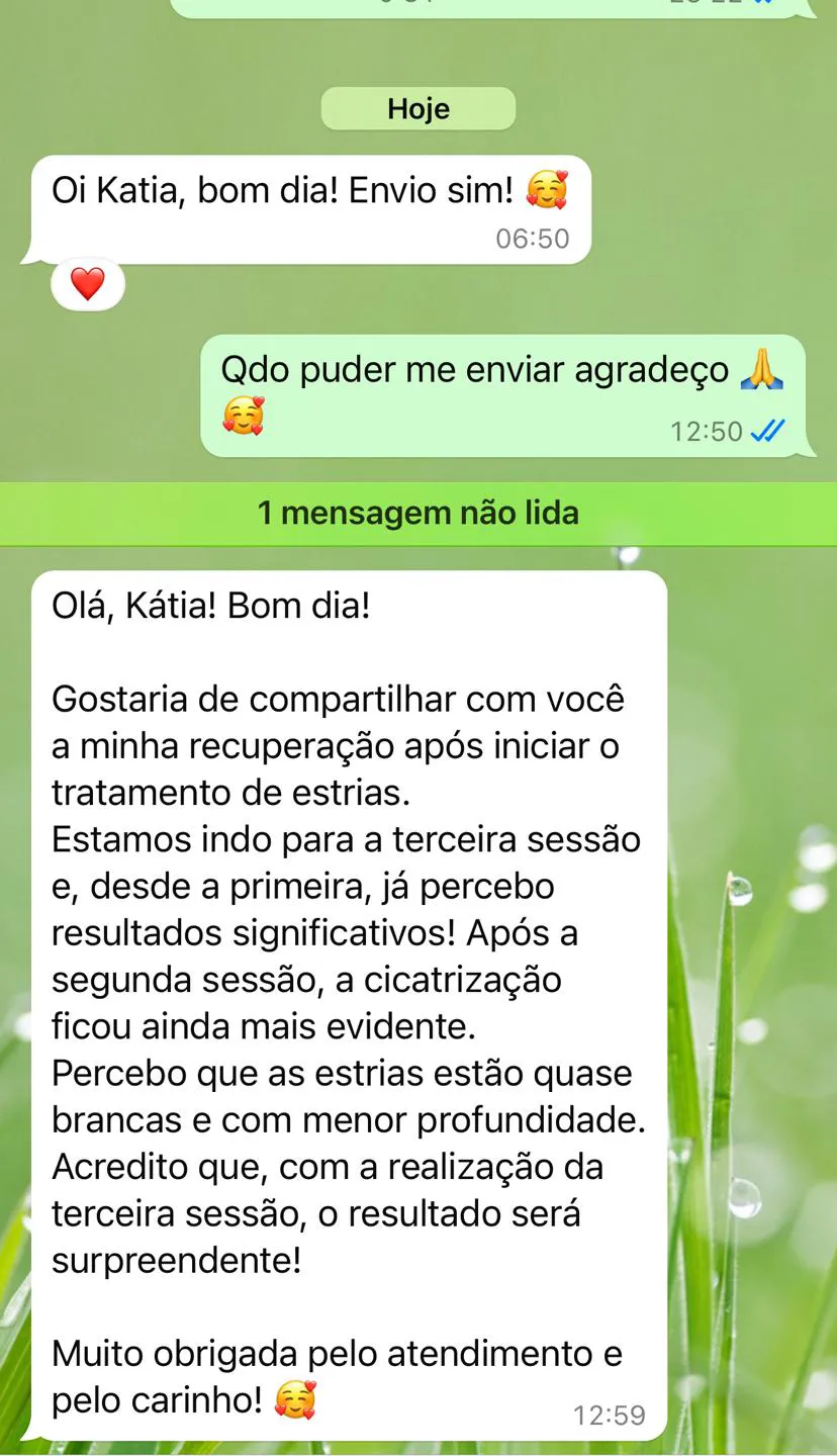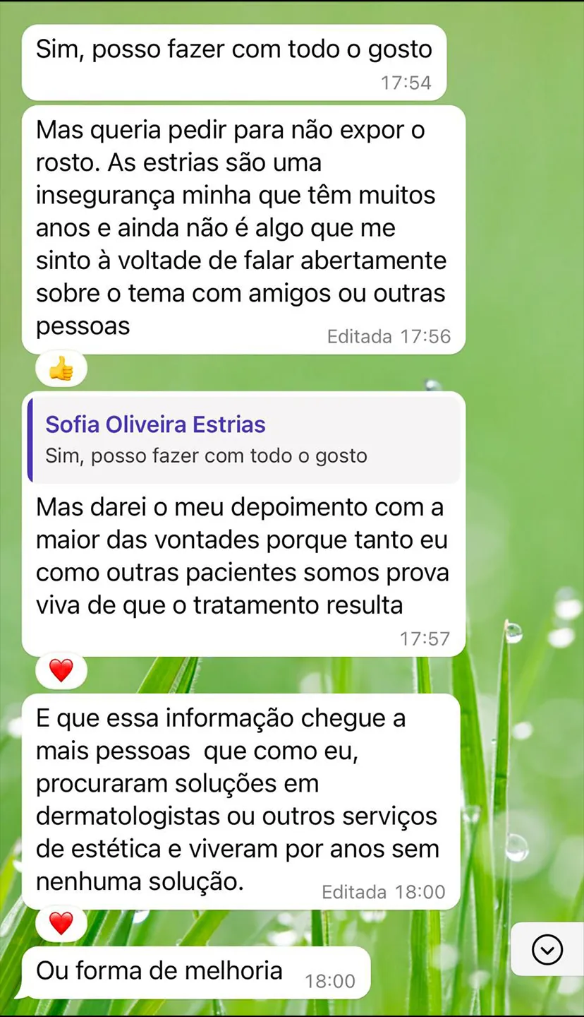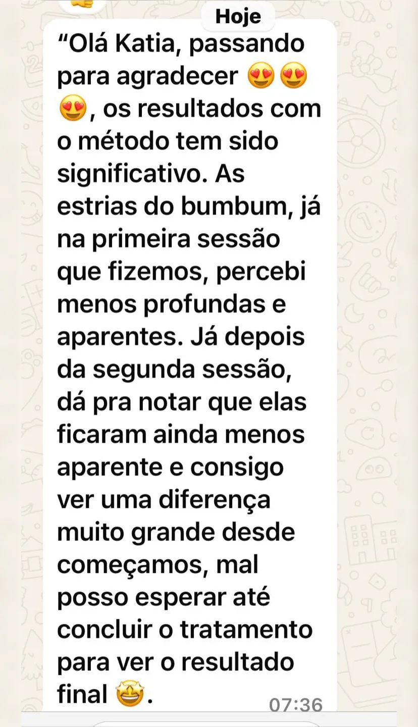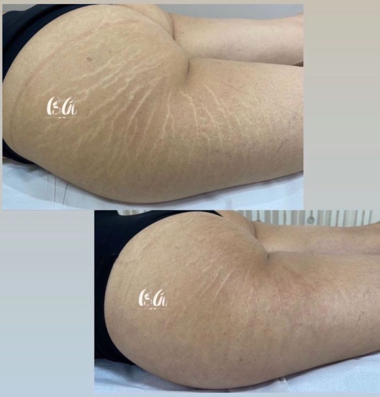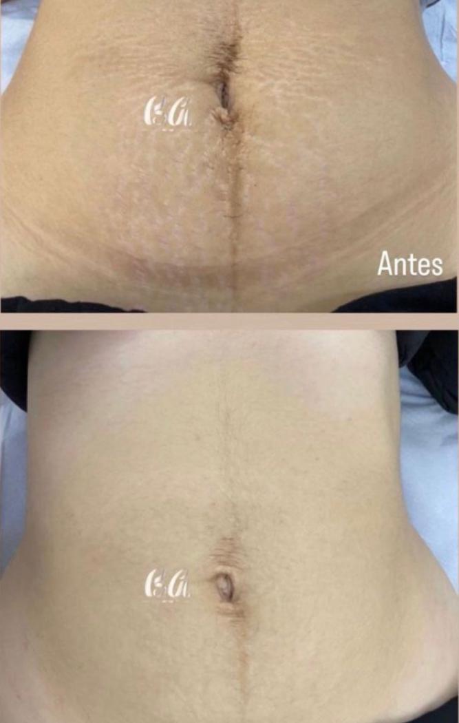 Com resultados de 70 a 100% em estrias brancas, vermelhas e definitivo na área tratada.