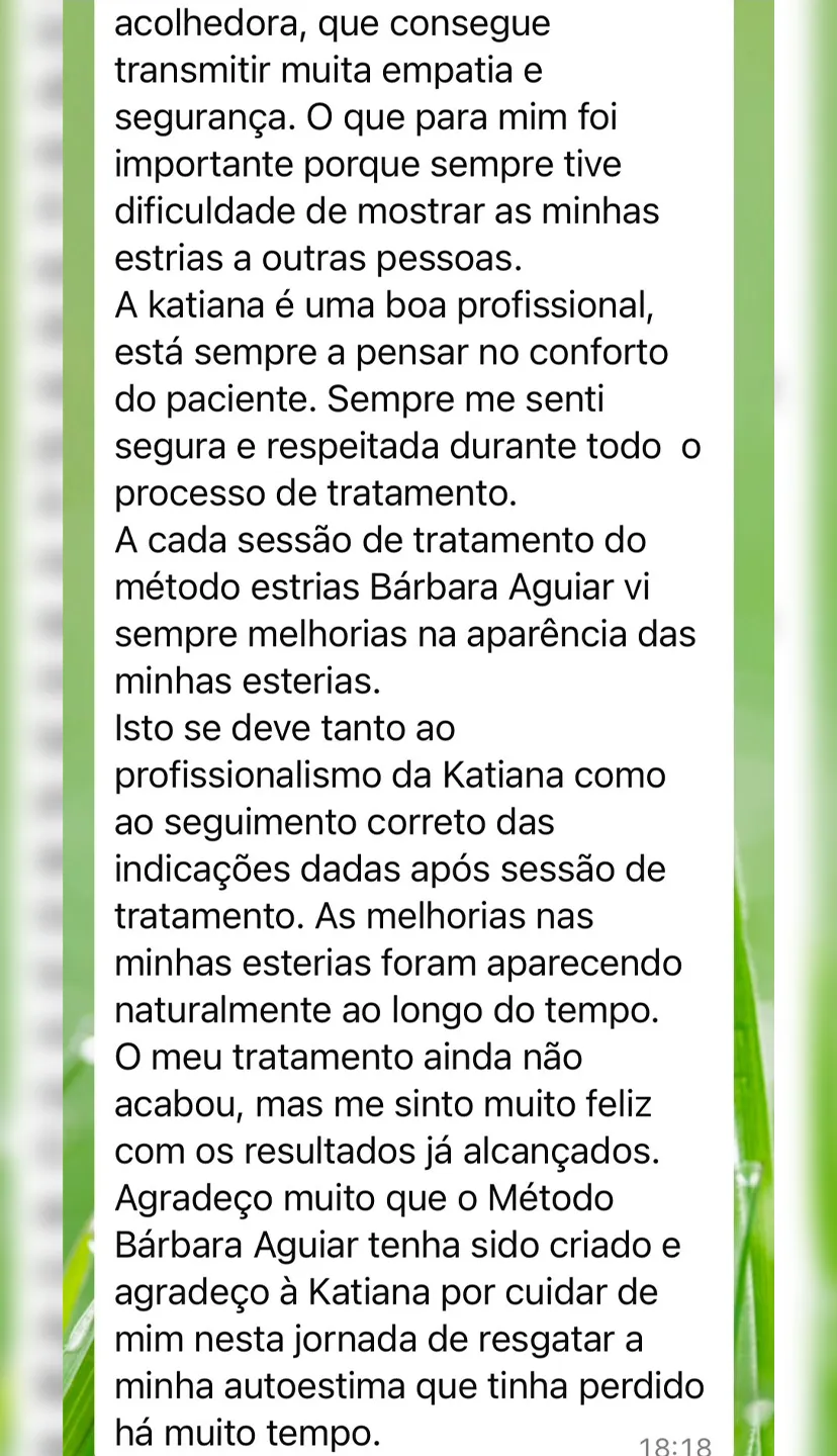 O tratamento para estrias pelo método Bárbara Aguiar tem como maior benefício a recuperação da pele estriada, o tecido estriado é substituído por um novo tecido.